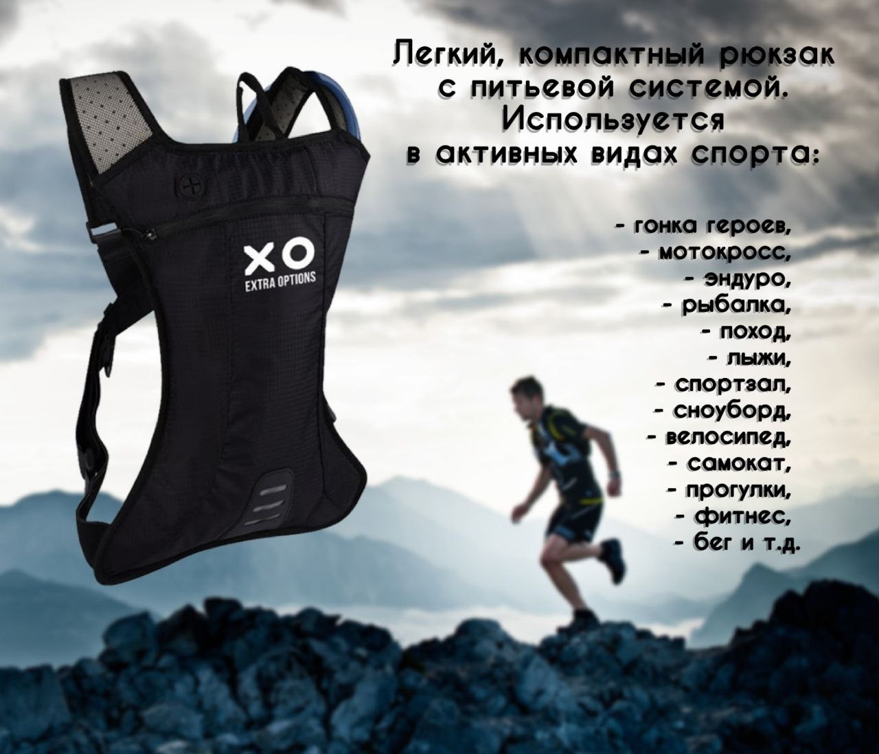 Рюкзак Черный XO, гидропак, гидратор, поилка, питьевая система для активных видов спорта eXtra Options